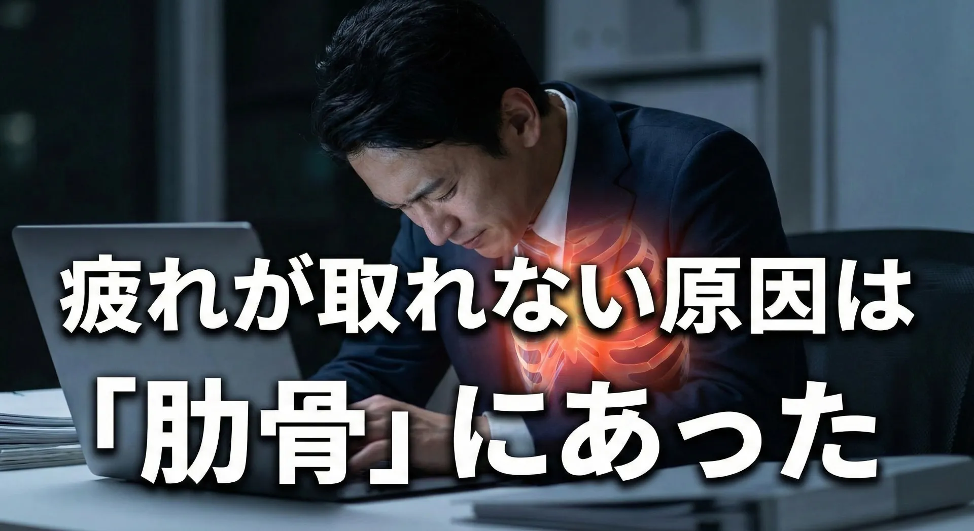 寝ても疲れが取れない、朝から重だるい──そんな悩みを抱える方の多くが、整体の現場で体を触ると肋骨や背中がガチガチに固まっています。特にデスクワークが中心の生活では、胸郭が内側に圧迫されて「巻き肩」状態になりやすい傾向が強まります。