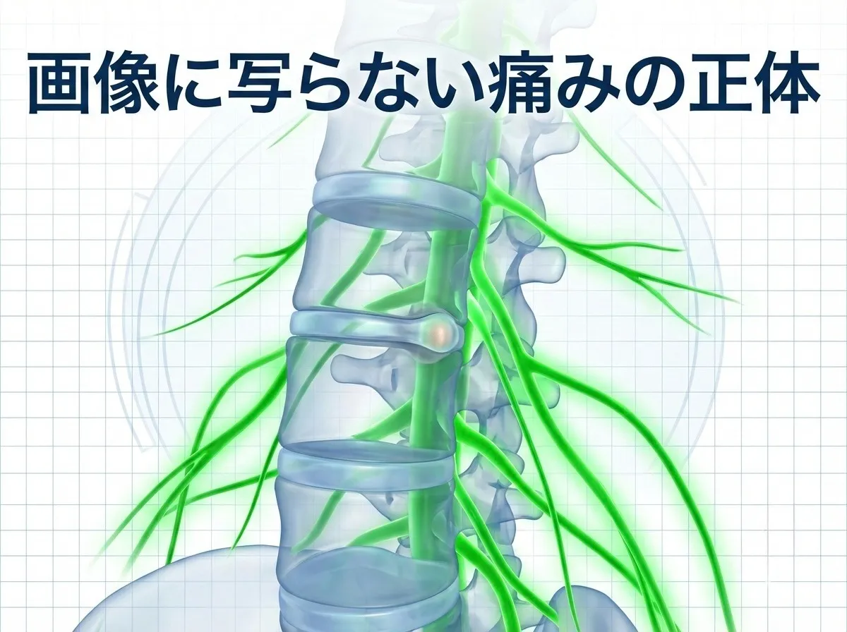 痛みの正体は、椎間板や骨の「形」そのものではなく、周辺組織の炎症や神経の過敏状態にあることが近年明らかになってきました。特に神経の血流不足や、持続的なストレスによる神経過敏が慢性的な痛みに関与していると考えられています。