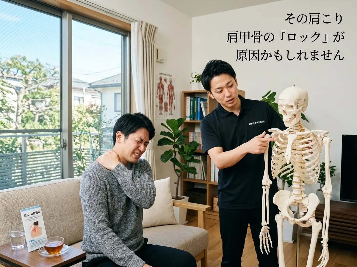 肩甲骨は「動く屋根」です。土台である骨盤(仙腸関節)が歪んでいると、屋根である肩甲骨をいくらはがしても、すぐにまた固まってしまいます。