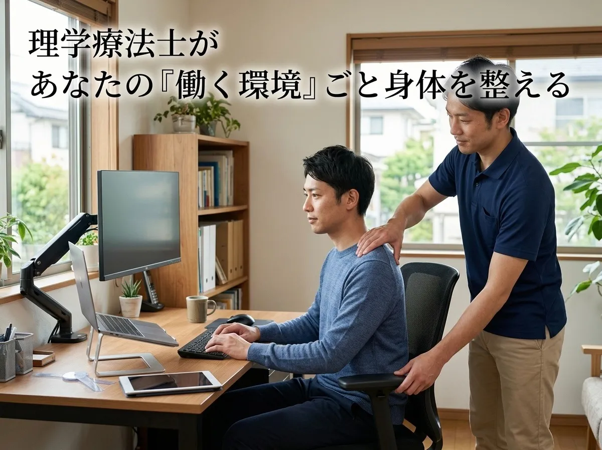 肩こり改善の本質は、単に筋肉を揉みほぐすだけでなく、身体の使い方や生活環境までトータルに見直すことにあります。出張整体では、PCのモニター位置や椅子の高さ、肘置きの有無など、実際の生活環境をその場で評価し、肩甲骨の静止位置や姿勢に即したアドバイスを提供します。